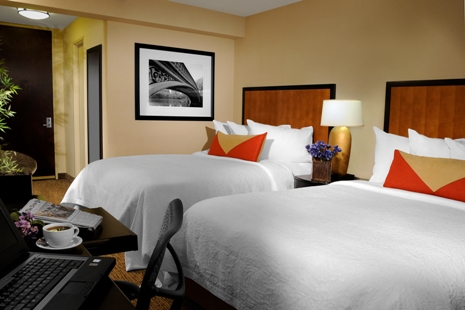 Every guest enjoys complimentary internet access, business center, fitness center & more! Hilton Garden Inn® Times Square is a newly renovated, contemporary hotel with the best Times Square location that is just steps from Broadway theaters, Restaurant Row, Rockefeller Center, Radio City Music Hall and Central Park. The hotel features 369 oversized guestrooms each equipped with 32-inch LCD flat panel television, refrigerator, microwave, safe, coffee maker, large work desk with ergonomic chair and complimentary high-speed wired and wireless internet access (with secure remote printing directly to our hotel's business center). Hilton Garden Inn® Times Square also provides complimentary lobby iInternet access, complimentary 24-hour Fitness Center, complimentary 24-hour Business Center, complimentary morning coffee and tea and complimentary USA Today® to each guest. Additional onsite amenities include Pigalle Restaurant & Lounge, a 1950’s style Paris café that is adjacent to the hotel (open early in the morning to late in the evening, with bar area), XVI Rooftop Lounge overlooking Times Square, evening room service and 24-hour access to the hotel’s Pavilion Pantry® Convenience mart (stocked with your favorite snacks, drinks & toiletries).