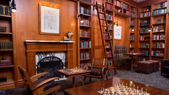 The Club Room has been meticulously restored to an original Beaux-Arts library. In this area, guests can enjoy complimentary espresso and cappuccino 24-hours a day while relaxing in front of a roaring fireplace.