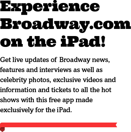 Broadway.com produces unrivaled coverage of live entertainment events, including original "word of mouth" theater reviews, star interviews and video coverage of the Broadway scene. Through in-depth information and advanced technology, Broadway.com provides a complete theater experience for visitors all over the world.
