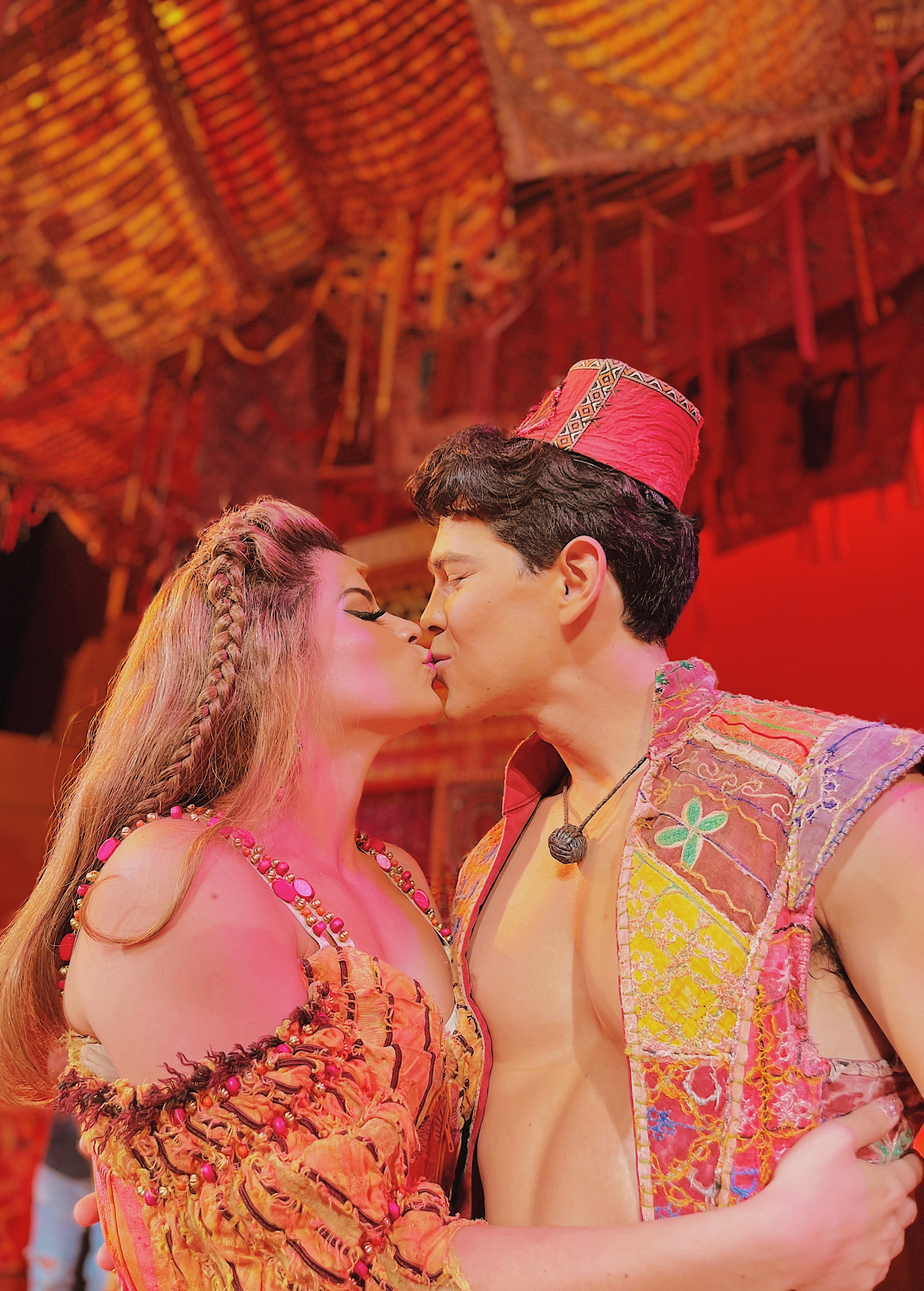 It's hard to encapsulate any single moment. We're lucky enough to see people, families come for their first Broadway experience. Not a show goes by that somebody doesn't say, "This was my first Broadway show." And because I certainly remember my first Broadway show, that's so exciting and impressed upon me that this could stay with them for a long time. And what better first Broadway show than Aladdin? It's giving all the glitz and glamour, the jazz hands, a big, tough number. For me personally, this is a really special chapter that I'm living through. Because it was a surprise. It's a gift, and I should say multiplied by 100 at least, that I get to do the show with my wife. We get to go to work together, eat lunch between shows and come back home together. The rarity is not lost on me, how special this whole thing has been. I'm just trying to cherish this moment, be present, have fun and treat this like the gift that it is. That's how I'm trying to approach this new iteration of Aladdin for me.