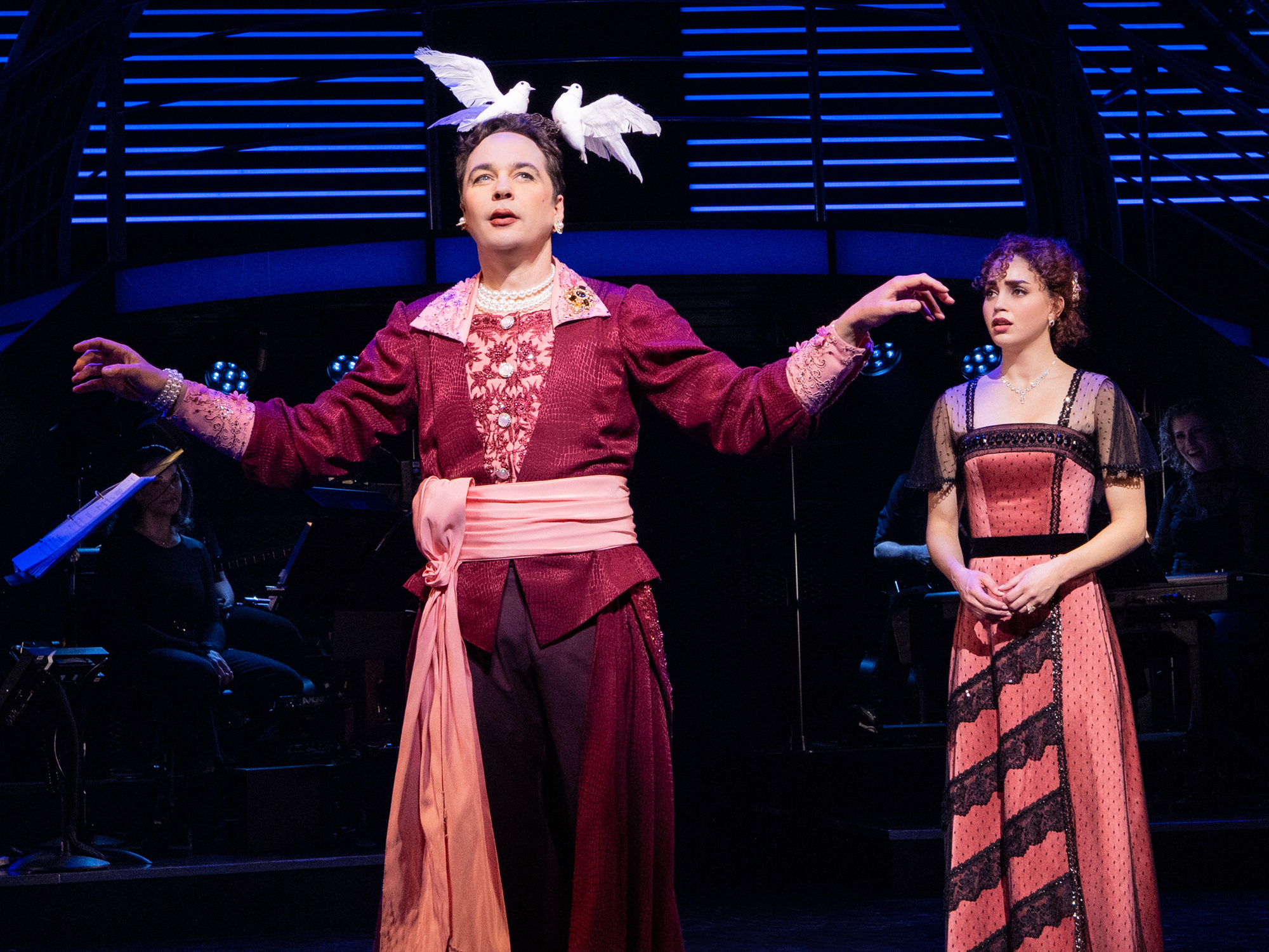 Shall we go for it? Titanique officially opened on Broadway April 12, and the production released new photos of the cast making waves at the St. James Theatre. Sail on through the photos and full gallery below, featuring Marla Mindelle as Céline Dion, Constantine Rousouli as Jack Dawson, Jim Parsons as Ruth Dewitt Bukater, Melissa Barrera as Rose DeWitt Bukater, Deborah Cox as Unsinkable Molly Brown, Frankie Grande as Victor Garber, John Riddle as Cal Hockley and Layton Williams as The Iceberg, with Sara Gallo, Polanco Jones and Kristina Leopold as the background vocalists.